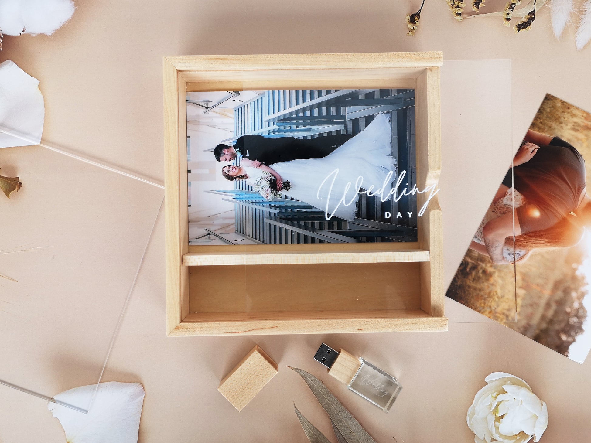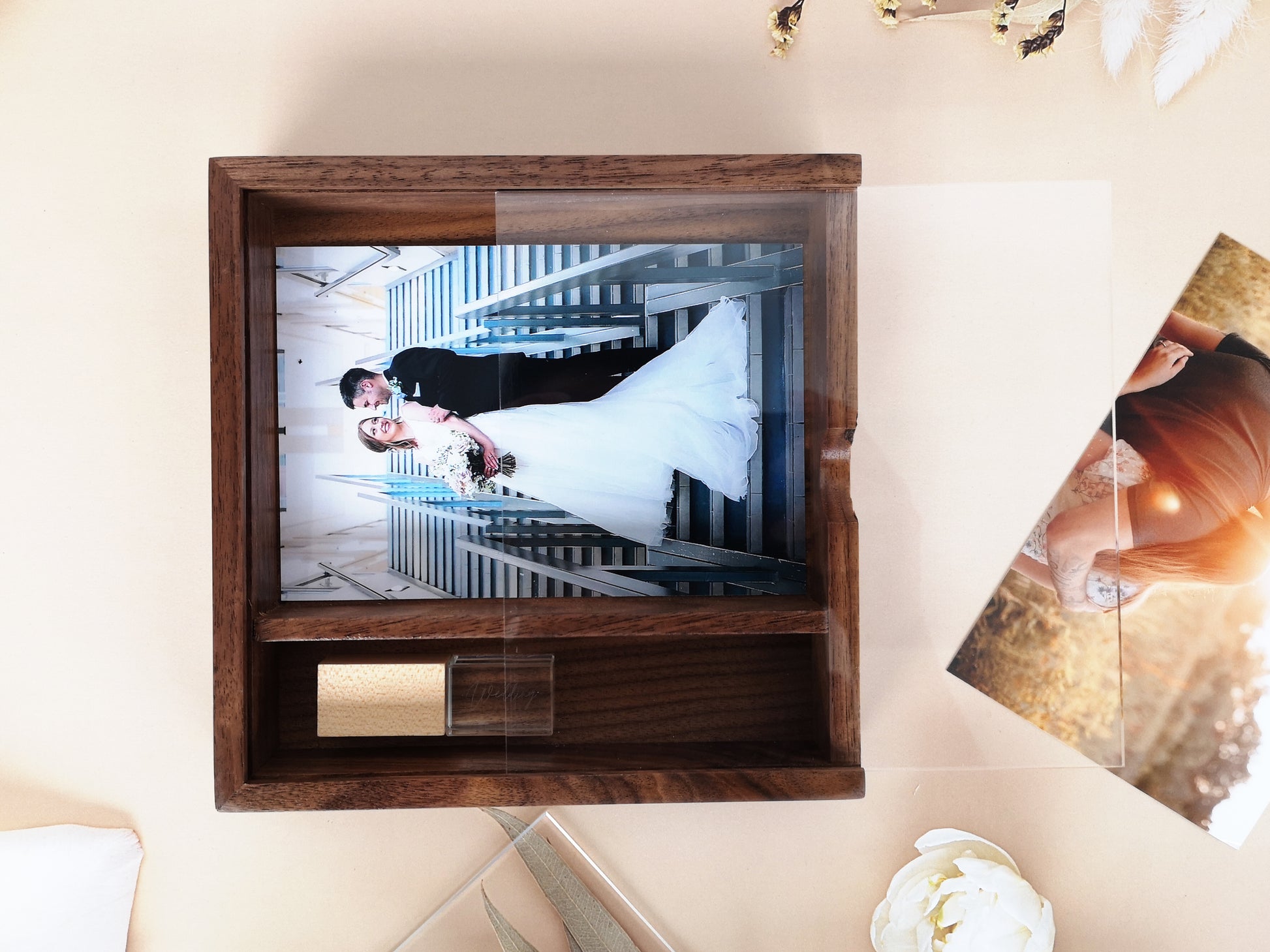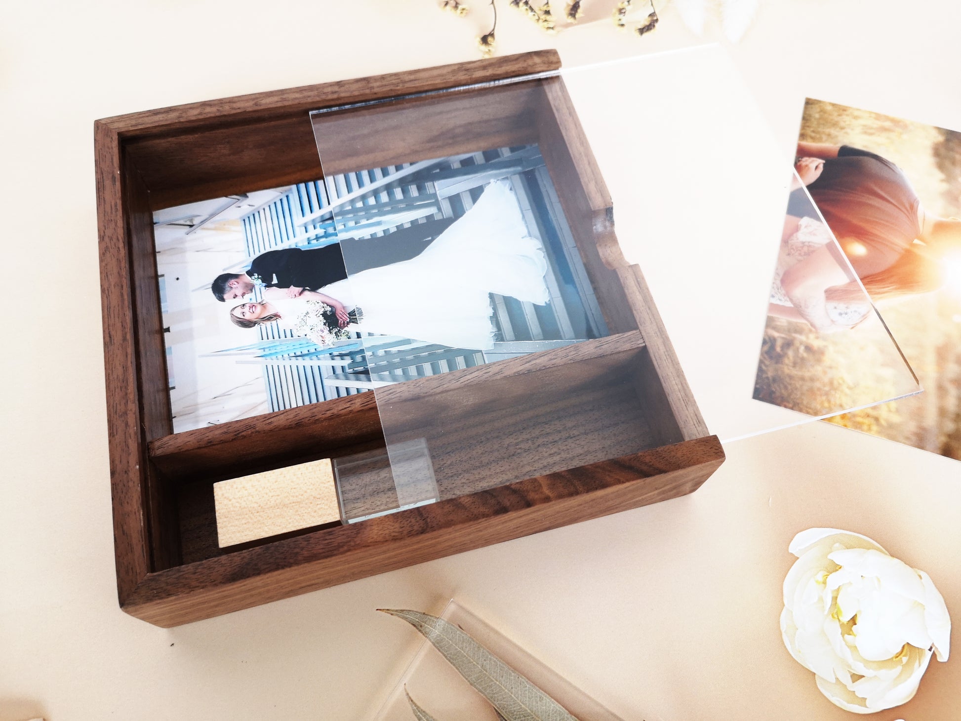 4*6 Inches Wooden Photo USB Box With Acrylic Lip