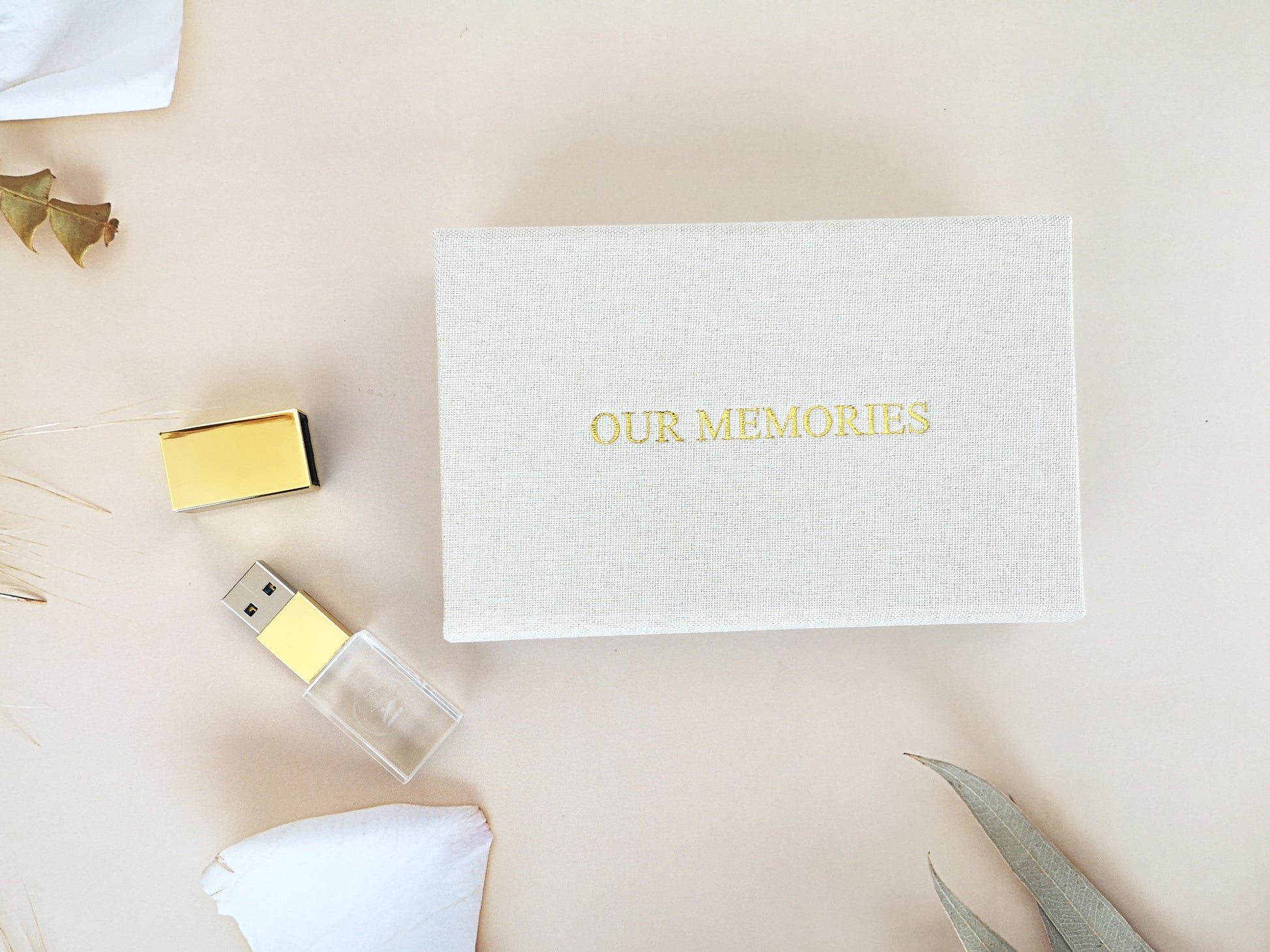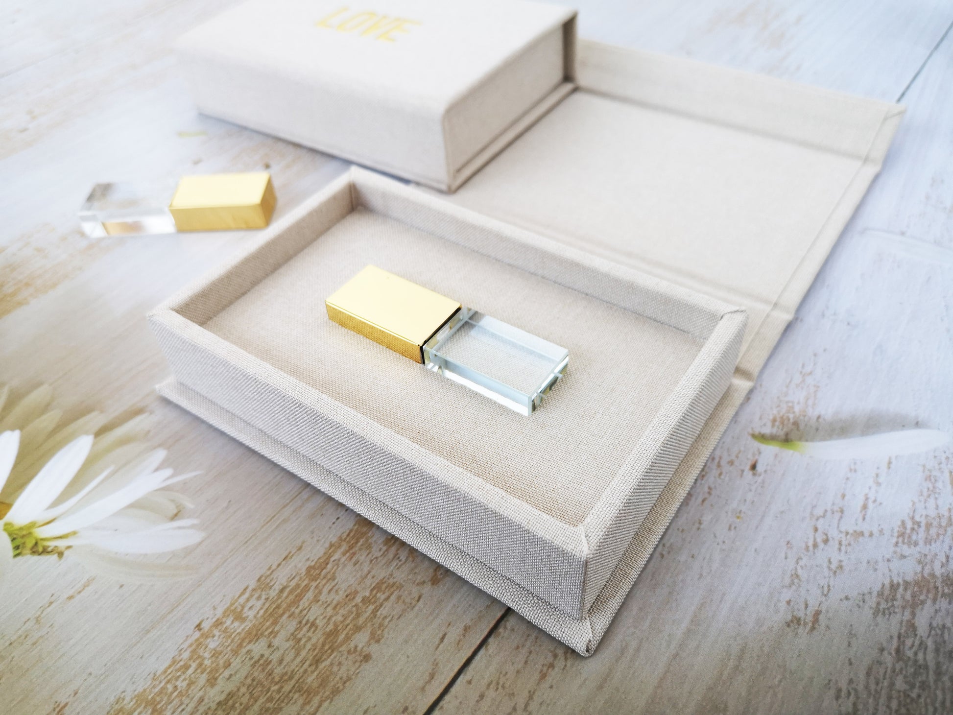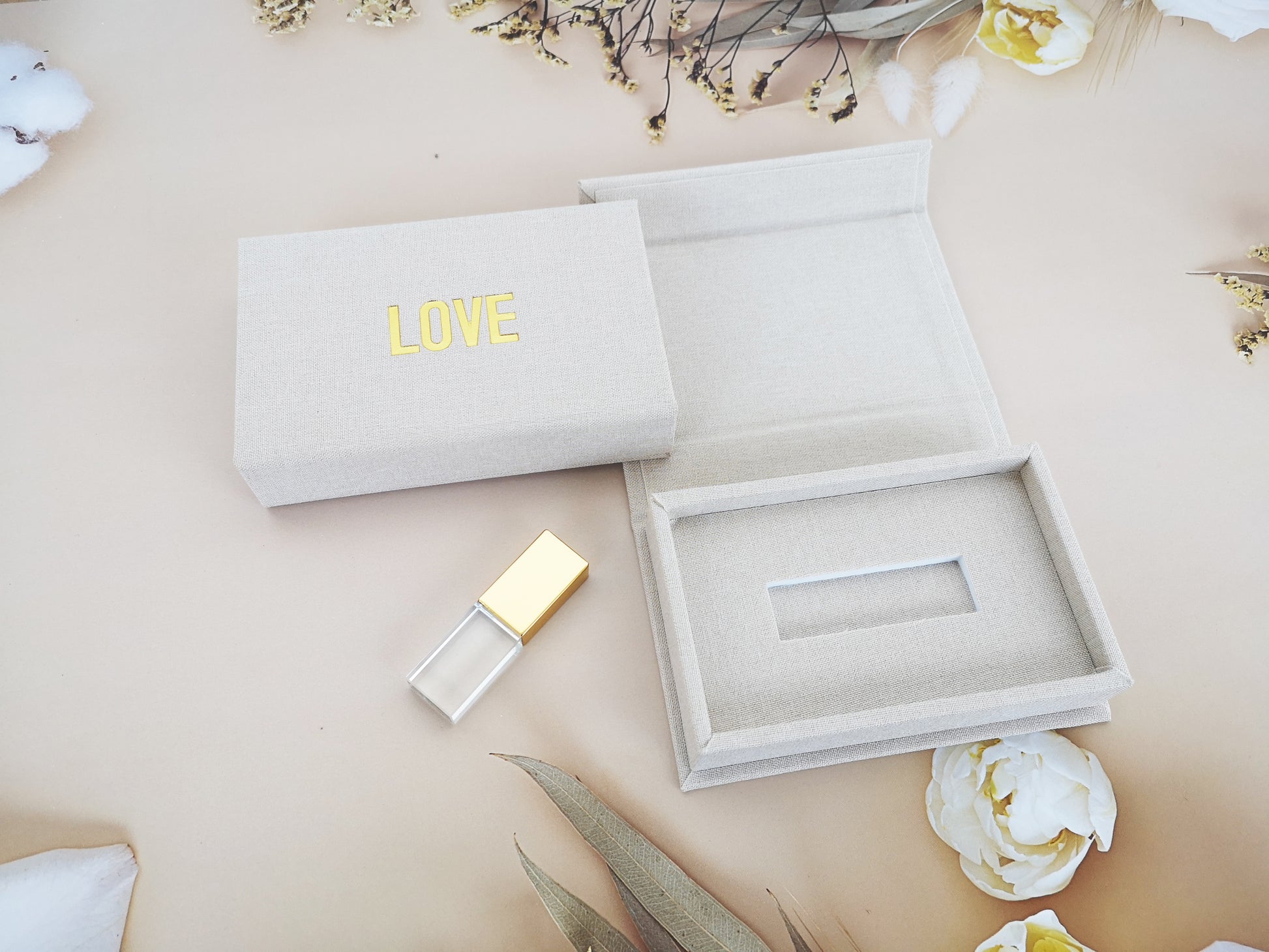 Beige Cream Linen USB Box