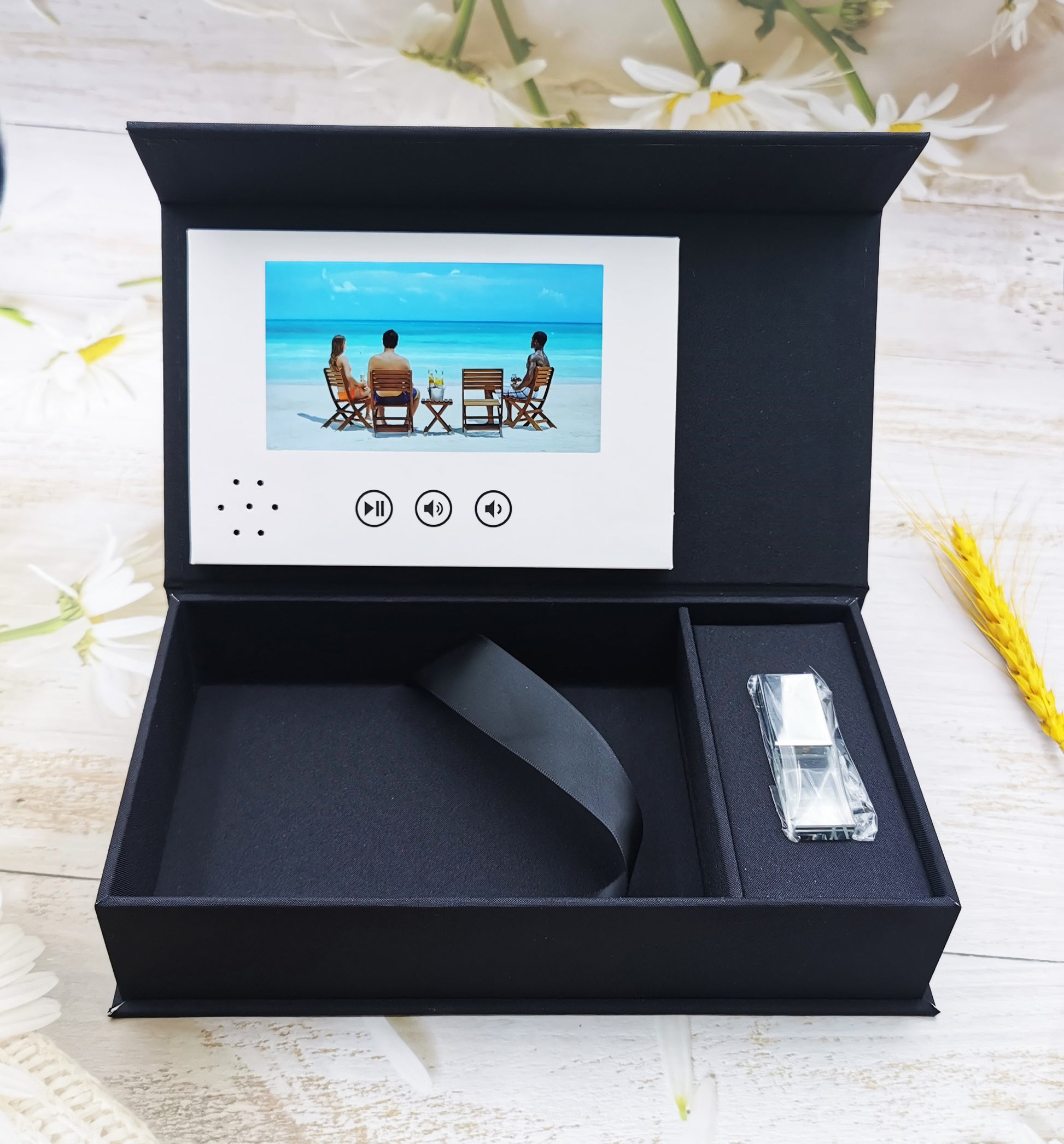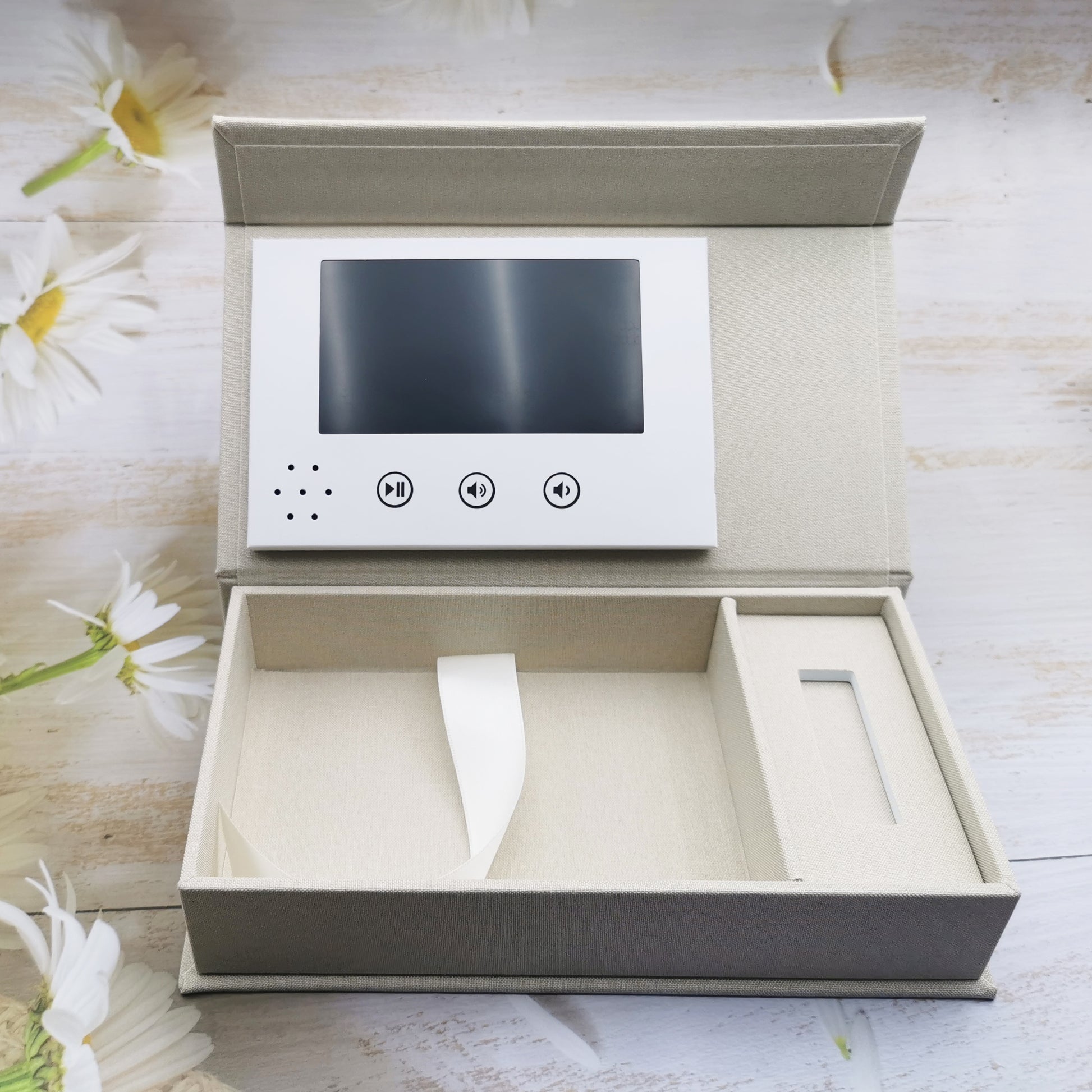 video player with photo linen box